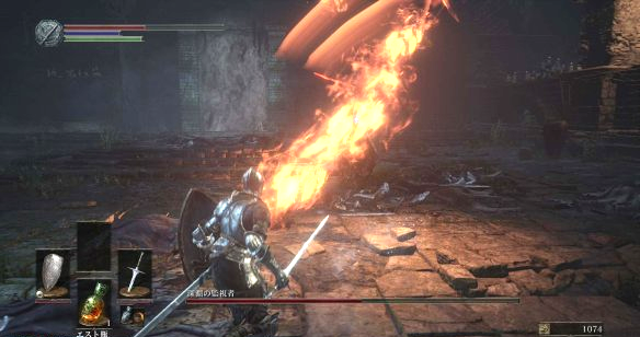 打完「洛斯里克王子」后回到「不死街」第一次看到遇见防火女的牢房发现伊贡的尸体,从身上得到上述的大鎚和盾