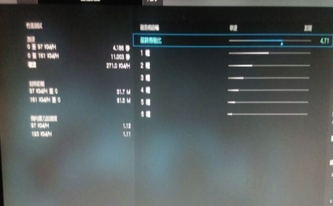 变速箱齿比是本次调校的重点,不过毕竟demo只允许调整最终传动比(总减速比),总之往加速方向调吧,差不多4.71是最合适的。