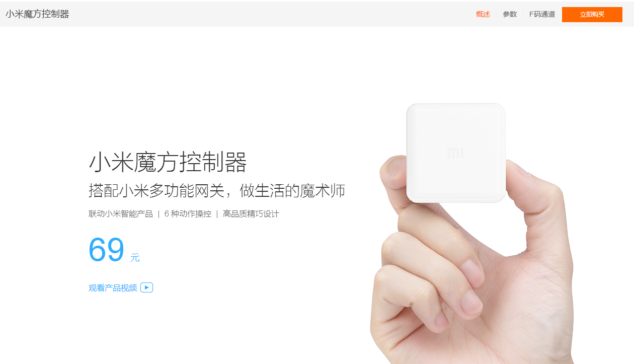 小米魔方是一款智能家居控制器,通过与智能网关相连,可以通过 6 种动作控制不同的家庭智能设备。外观方面小米魔方长宽高均为 45mm,重 73g,同时搭配白、粉、蓝三色机身。官方表示,小米魔方控制器通过高精度加速度传感器和陀螺仪,配合小米自主研发的动作算法,能够感应出魔方的六个运行轨迹,可以轻松关闭小米电视、调节 yeelight 灯泡亮度及颜色、切换网关内置电台等小米智能家庭产品。目前小米魔方控制器已经支持多功能网关、小米空气净化器、小米电视、yeelight 灯泡、小米智能插座、小蚁智能摄像机等智能设备,随着陆续的产品功能更新,会支持更多的智能设备。