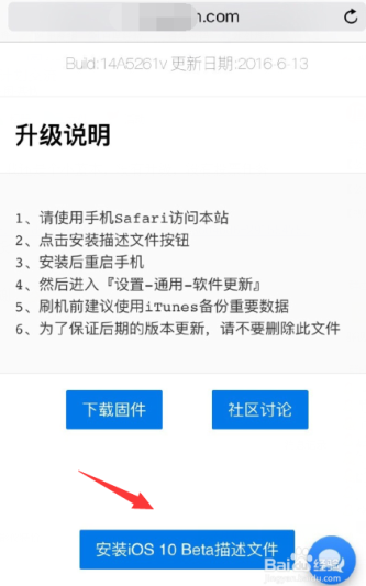 打开Safari浏览器后,我们可以进入到一些知名的iOS 固件下载网站(因为经验的广告协议,这里小编就不贴出具体某网站了,大家可以进入以前自己喜欢的下载网站)进入后,我们找到且点击安装Beta版描述文件。