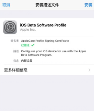 然后,在点击点击安装Beta版描述文件后,我们先这里静待手机自己安装好这个描述文件,需要等待一下。