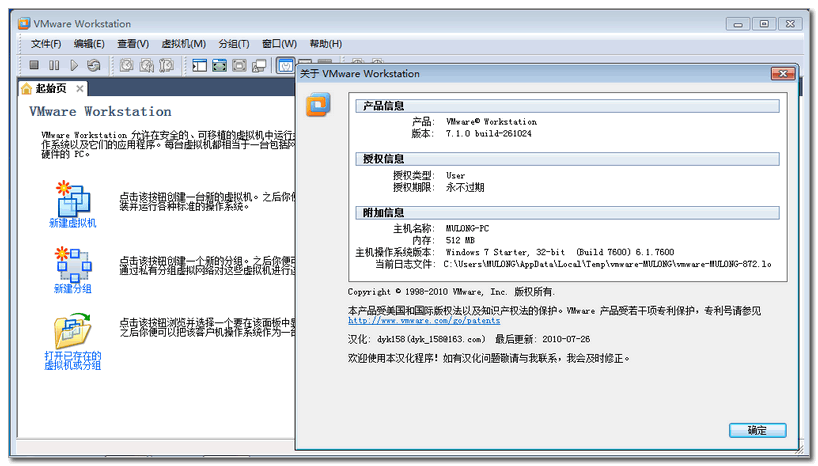 请有使用沐珑制作的 "VMware Workstation 7.1.0 build-261024 精简绿色版"的朋友看到了马上更新一下.