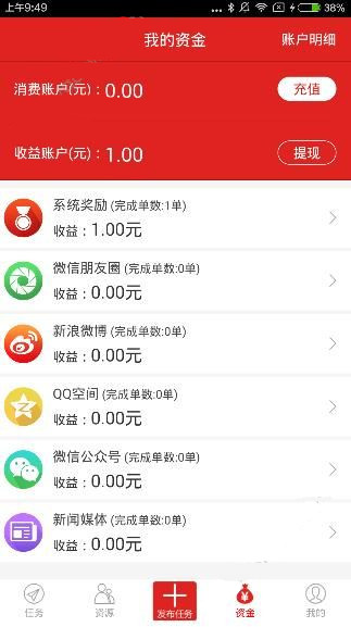 1、我们进入红人点点的资金页面,就可以通过点击“提现”按钮,输入提现账户进行提现啦!