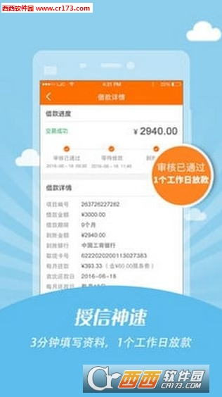 2、授信神速:3分钟填写资料,1个工作日放款,再次借款更快捷。