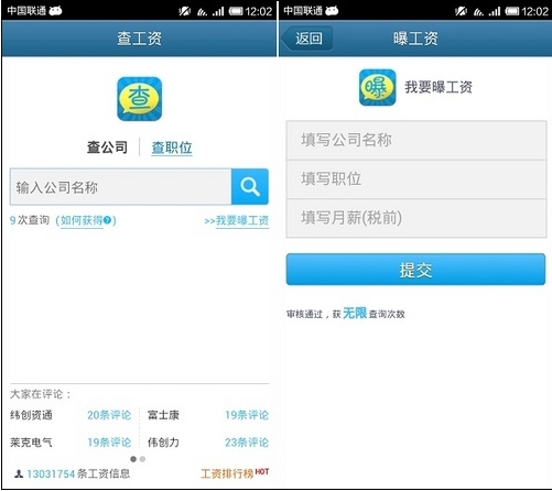 除官网之外,曝工资也有手机App应用,不过目前仅仅支持Android平台。