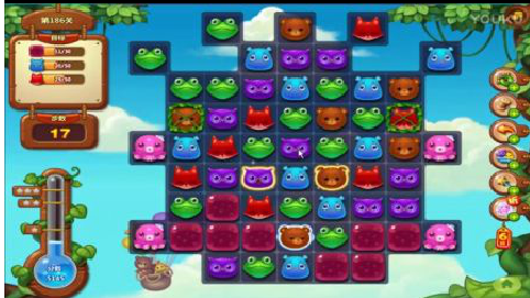 等云层消除以后,关卡就会开始下降了,我们在消除的时候,中间的布局是比较大的,我们在制作出直线的特效以后,就可以更快的消除关卡里面出现的雪块了