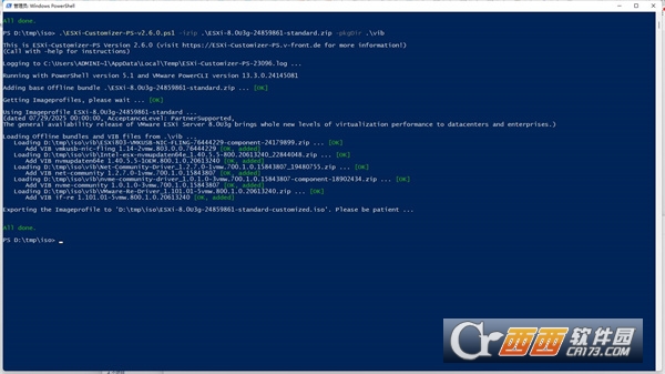 Write-Host -Foreground green "`nCreating Custom ESXi ISO and saving to ${ESXICustomIsoPath} ...`n"