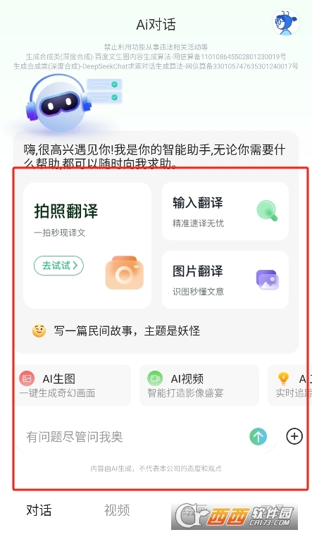 1、全功能AI矩阵覆盖:Deepask整合了丰富且强大的AI功能矩阵。AI对话功能基于先进的自然语言处理技术,能理解复杂语义,进行知识问答、闲聊陪伴、逻辑推理;AI绘画支持输入文字描述,快速生成动漫、写实、国风等多种风格画作;AI视频功能可将图文内容一键转化为动态视频,添加字幕、特效与背景音乐。同时,创作工具板块涵盖多类型文案创作工具,从工作汇报到创意写作,满足不同用户的多样化需求,真正实现“一个应用,多种AI体验”。
