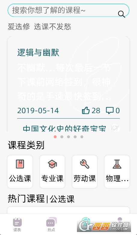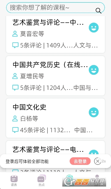 2、选课辅助,“选课专区”展示可选课程列表,标注课程学分、上课时间、教师信息;提供“课程评价”板块、“选课建议”;选课期间实时更新选课热度,帮助学生避开热门拥堵课程,提高选课成功率。