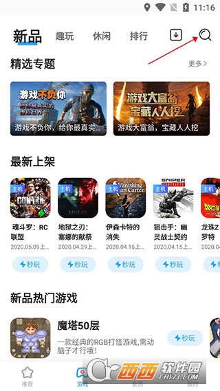 1、在本站下载安装软件,打开天翼云游戏app,并点击右上角的搜索选项
