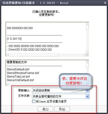 注意禁止自动更新。如果出现自动更新提示请选择永不检查且选择否。