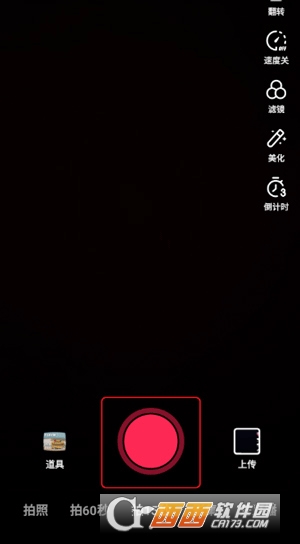1、运行抖音软件,点击首页中的“+”标志,进入视频录制界面;