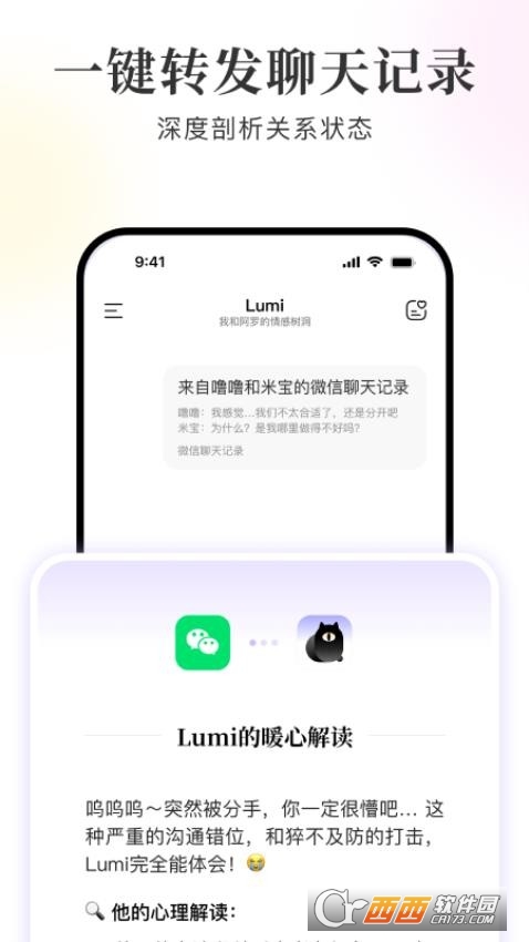 即时聊天分析:用户仅需上传微信聊天截图,或者直接将聊天记录转发给Lumi,它就能迅速生成一份深度情感分析报告。AI技术在此过程中发挥关键作用,精准识别对方的潜台词、真实情绪以及隐藏意图,让用户告别在关系中的过度猜测和不安全感。