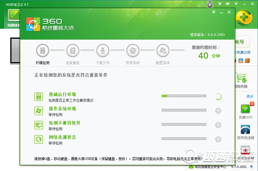 不占硬盘空间的360系统重装大师5.0:360系统重装大师历经多次技术改进,广泛搜集用户反馈和使用意见,现在已经推出了采用虚拟文件系统的5.0版。在这个版本中,不再强制使用D盘作为工作分区,也不会在重装后继续占用硬盘空间,未来更可支持一次下载多次重装。