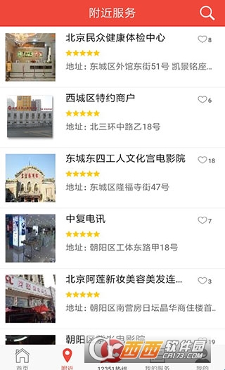 2、切换到【附近】页面之后,我们还能看到附近的各类商户服务及其详细地址。