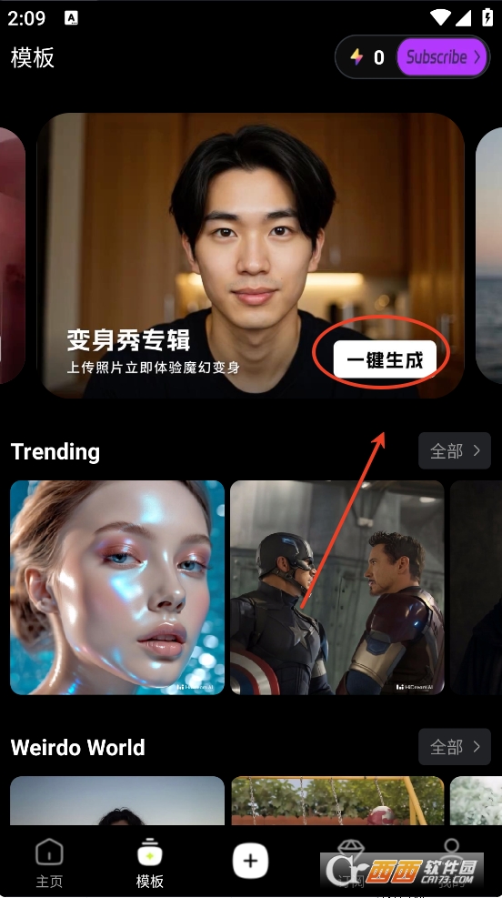 特效模板功能:软件提供300+爆款模板,涵盖热门特效、ins风滤镜等。用户只需上传图片或视频片段,即可一键套用模板,3秒出片,轻松成为特效大师,制作出朋友圈点赞收割机般的作品。比如选择一个时尚换装特效模板,上传人物图片后,就能快速生成人物换装的炫酷视频。