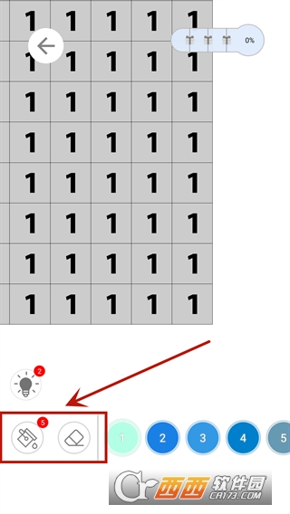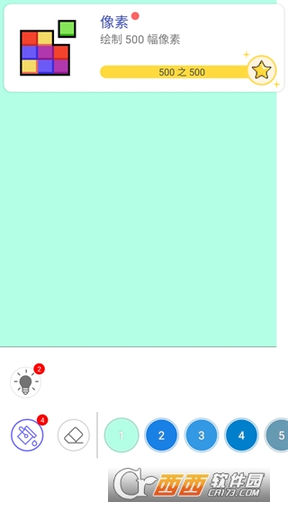 5、填色的方法也很简单,主要有两个按钮,分别为填色和擦除,只需要根据方块上数字使用指定的颜色,并在对应的地方涂上色彩就可以