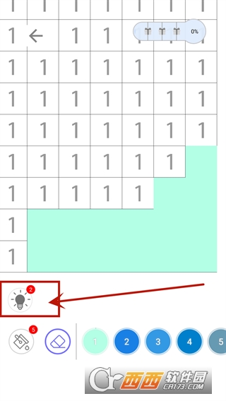 6、由于每一张图片的难度都不相同,当在填色是遇到困难时还可以点击图示的灯泡按钮,系统将会提示该涂色在哪一区域