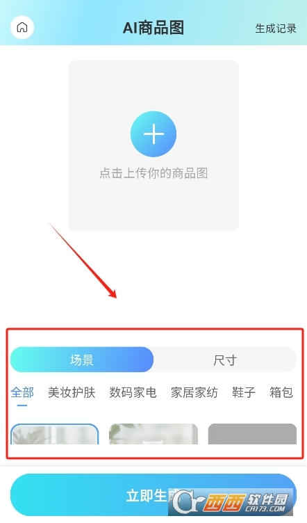2、AI商品图:上传产品图片后,系统可自动生成海量场景图,助力电商用户快速完成商品主图设计。