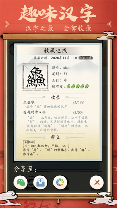 2、玩法非常的具有创意,关卡也是超丰富的,每关都会有着不同的汉字会出现在其中,