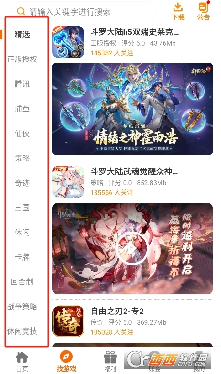 3、拥有不同类型游戏,包括捕鱼、仙侠、策略、奇迹、三国、休闲等