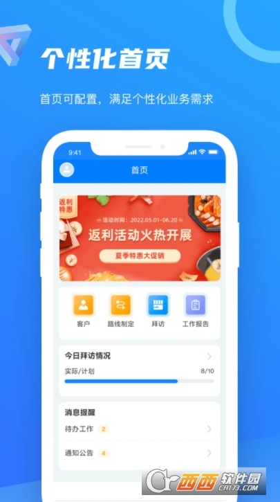 2、日程任务:清晰查看每日、每周的任务安排,如拜访计划、销售目标等。
