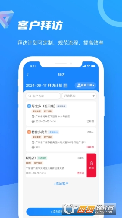 3、客户管理:维护终端门店信息,记录拜访历史。