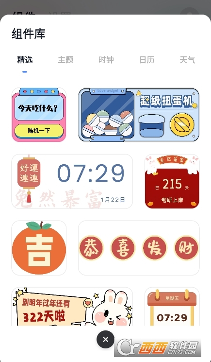 创意小组件软件官方版下载是一款桌面美化组件应用,拥有丰富的组件样式,用户可以自定义设置,一键添加到桌面上,非常便捷高效,让你的手机屏幕变得与众不同,有需要的朋友欢迎来西西下载使用。