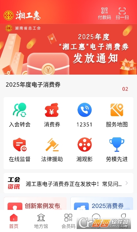 湘工惠app2026正版安卓版是湖南省总工会针对职工开发的普惠服务软件,职工可以使用这款软件了解工会的最新动态,同时还涵盖了职工书屋、医疗服务、法律援助、困难帮扶、工惠团购等诸多功能,为工会职工提供更加便利的生活服务,需要的可以来西西下载湘工惠app进行使用。