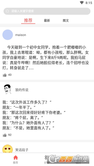 2、提供的内容很丰富,涵盖各种幽默短文、内涵图片、趣味视频等,所有搞笑资源应有尽有,让你笑得停不下来,是用户蹲坑必备神器。