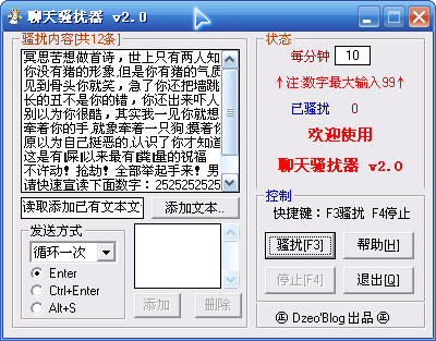 聊天骚扰器 有人不想和你聊天? 那就逼他就范吧~ O(∩_∩)O哈哈~