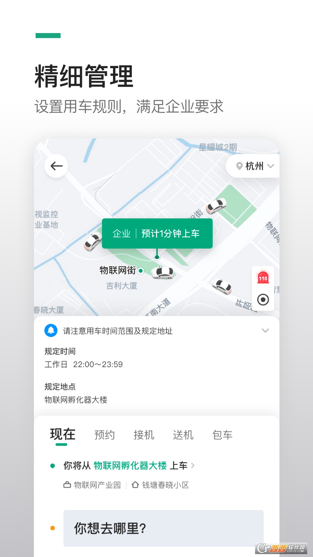 精确设置用车时间和地点,规范员工加班用车;