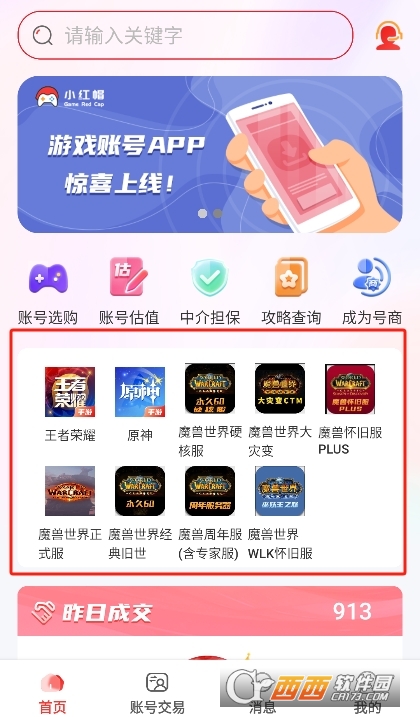 3、支持热门游戏账号交易,包括王者荣耀、原神、魔兽世界等等