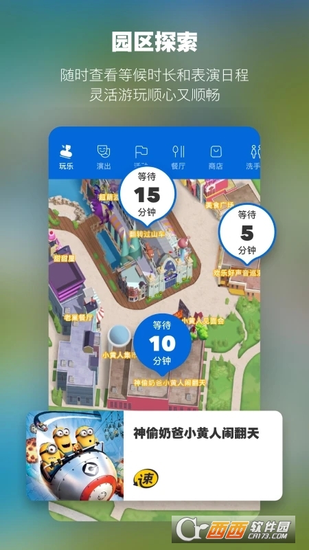 浏览地图,定位玩乐、演出、餐厅、商店、酒店等,轻松游园