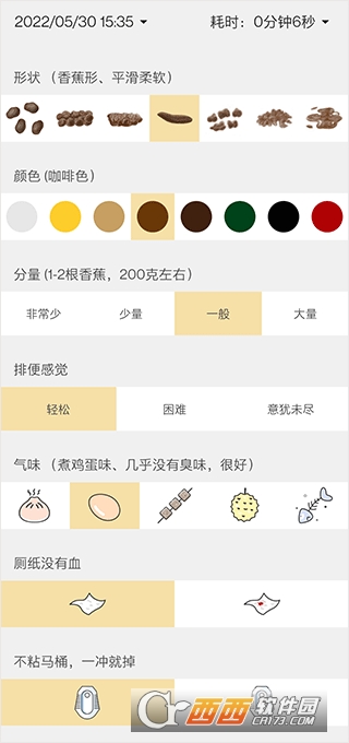 便便记录:和跑步一样,点开始即可,还有可爱的便便小人和你一起蹲,一点都不孤单!偶尔忘记?还可以补充记录。