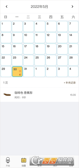 5、在日历这里可以清晰的查看到每日的便便情况,还可以手动补充记录;