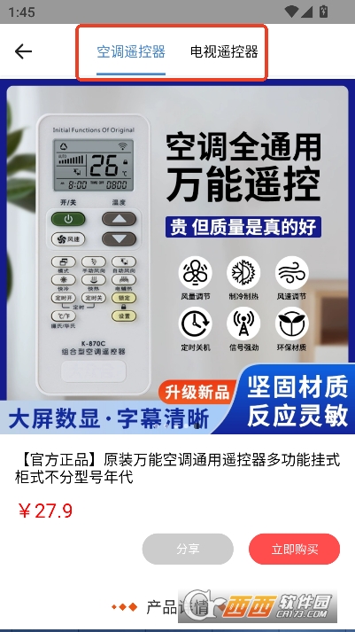 红外万能遥控器手机版app是一款好用的遥控器软件,有了这个软件,你可以远程控制所有的家用电器和其他可以用红外线远程控制的设备。软件包括电视、机顶盒、空调等设备。调试后都可以通过遥控器直接控制,并且软件还内置了在线商城,能够直接购买万用空调遥控器与电视遥控器,非常方便快捷。