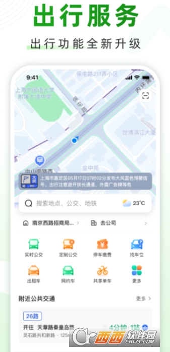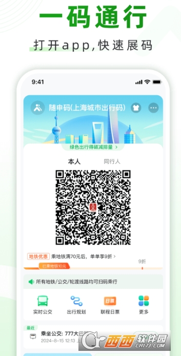 随申行是一款上海市绿色出行服务平台。在APP中为用户展示全市的出行路线,输入地址即可进行导航,让你出行不愁,支持各个站点快速查询,还能获取实时的路线方案推荐,实时语音导航,二维码快捷通行,满足不同用户的出行需求。有需要的快来西西软件园下载吧!