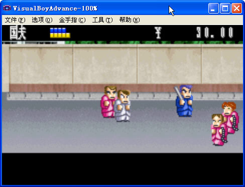 十字键可以控制八个方向。按两下前为跑;A为拳,B为脚;持有武器时,A为近身攻击,B为投掷;可以将倒地的敌人拣起当武器使用。
