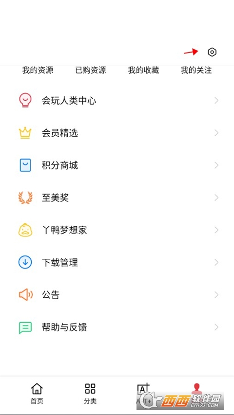 2、然后在我的界面,点击右上角的设置选项。