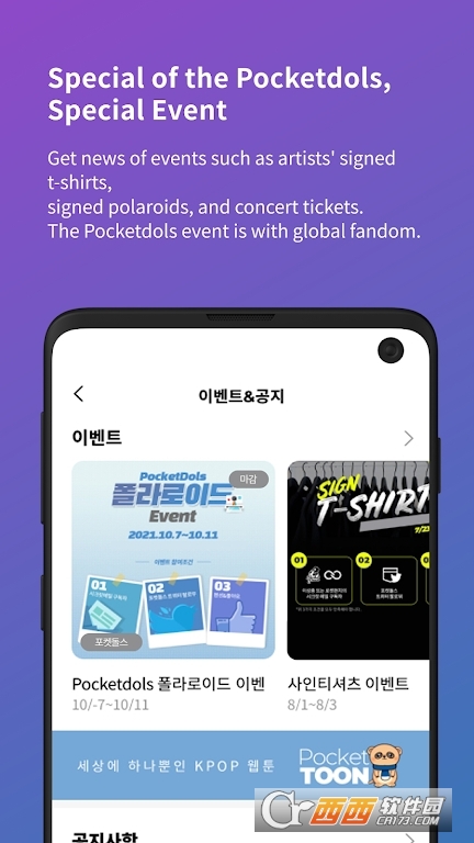 粉丝和艺术家的提要将被翻译成您喜欢的语言。您还可以享受 POCKETDOLS 的独家活动,例如 Sign T-Shirt Event 和 Sigh Polaroid Event。