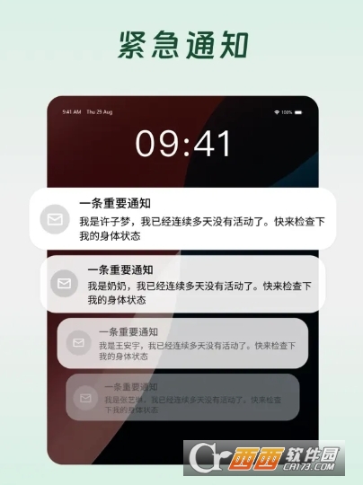 3、提前设置一位紧急联系人(家人或好友),若连续多日未在应用内等到,系统将干次日自动发送邮件告知对方,及时传递安全异常信号