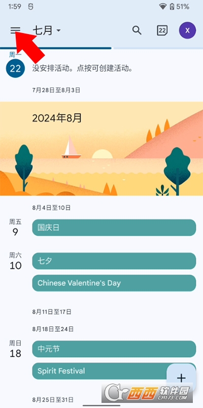 1、下载并打开谷歌日历,点击下图所示左侧按钮