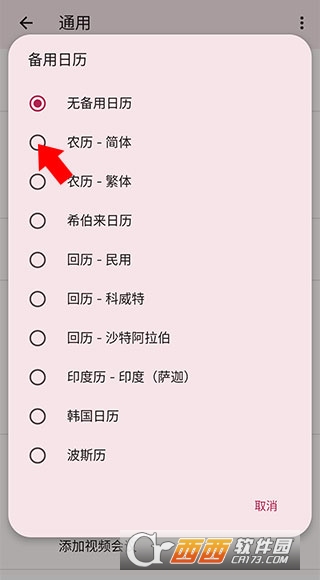 5、最后在打开的选择栏中选择【农历-简体】即可