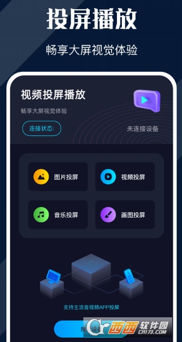 多场景投屏与高清体验:支持图片、视频、音乐、画图等多类型投屏,兼容主流音视频 APP,手机与投屏设备(电视、投影仪)连同一 WiFi 即可快速连接,搭配 4K 超高清、多画质选择功能,满足大屏与高清观影需求。