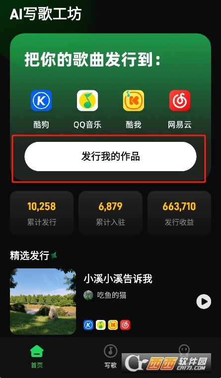 AI写歌工坊app下载免费手机版支持智能辅助作词,能够精准匹配韵脚,让歌词创作更加流畅。同时,它还具备极速作曲功能,只需输入旋律构想或情感关键词,即可生成完整的音乐作品,可以将通过AI写歌工坊创作的原创歌曲直接发行到各大音乐平台,如酷我、酷狗、QQ音乐和网易云音乐等。