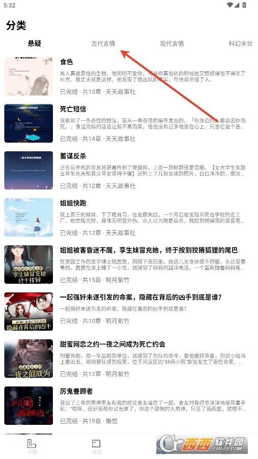 可以在顶部进行搜索分类,找到自己想要看的小说