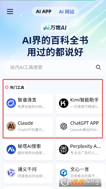 万物AI软件2025最新版下载是一款非常好用的优秀ai工具软件,能够为用户们提供丰富的ai合集,打造全新的精彩ai工具箱功能,非常好用,提供不同类型的手机端ai工具使用,各种免费ai都在这里,包括ai文字、ai绘画、ai搜索等等,欢迎来下载试试把。