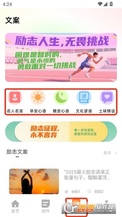 3、文案资源整合:收录名人名言、早晚安心语、励志情感等多类文案,支持自定义编辑文字备注并更改字体大小。用户可将喜欢的文案设置为桌面标语,随时获取灵感或传递情绪,让桌面兼具实用性与情感温度。