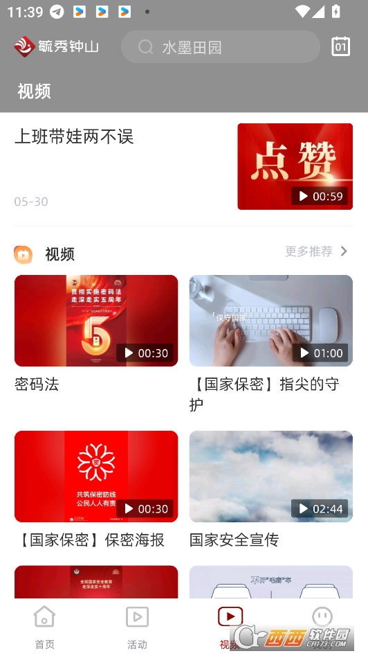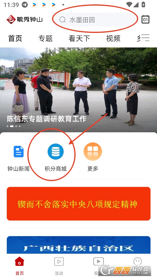 在西西软件园下载并且安装毓秀钟山app,打开软件首页